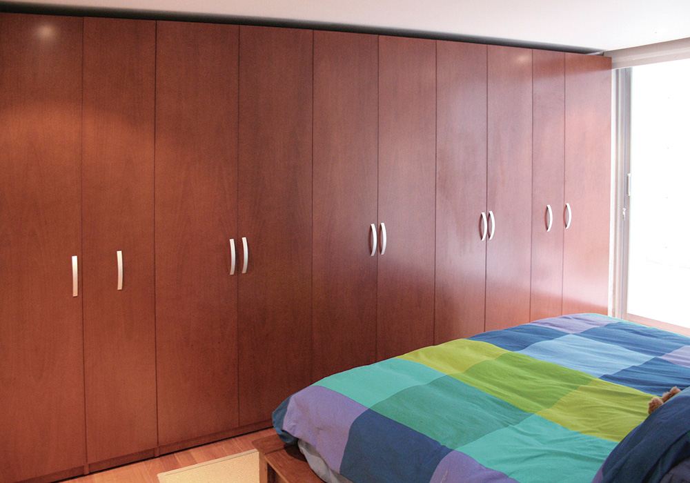 Colgadores, entrepaños, zapatera extraíble y cajones.